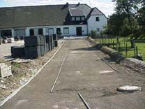 maschinell durchgeführte Pflasterung mit Pflasterlegemaschine; Objekt Dahlhof in Bedburg-Hau