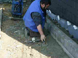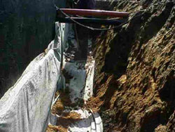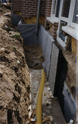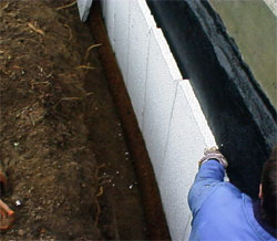 Anbringung von Drainageplatten nach Verlegung des Drainagerohres