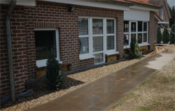 Nierswalder Kindergarten während und nach der Trockenlegung im Außenbereich